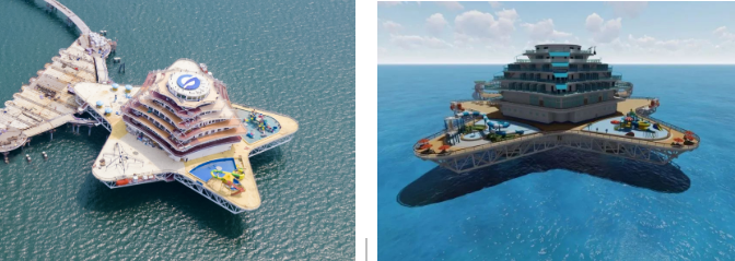 以濱海城市為依托,該方案重點建設需求旺盛、基礎好、見效快的“海洋文旅+深海養殖+海上風電+海洋信息管網”4個要素單元,釋放旅游、養殖、綠色能源耦合效應。綜合體采用模塊化設計、區域化協同部署,由濱海向深遠海帶狀輻射,布局建設游輪游艇群、養殖文旅平臺、深海養殖產業園、分布式海上風電場及智能微電網、深海移動養殖工廠和海洋信息管網等風漁文旅結合項目。以郵輪游艇連接海上設施,構建海上旅游娛樂交通網,以中小型郵輪航線實現沿海城市綜合體間串聯,構建沿海城市海上旅游觀光帶,同時培育郵輪與康養休閑岸?;尤诤夏J剑蹲健?、滿足多元化潛在消費需求,打造風漁文旅等一二三產業融合新業態,形成沿海藍色海洋經濟帶。