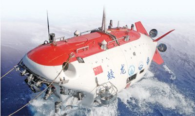 2012年6月15日,蛟龍號載人潛水器進行7000米級海試首次下潛試驗。(人民視覺)