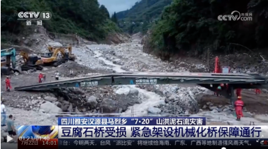 中船應急生產制造的21/26米應急機械化橋在此次四川雅安搶險救援中順利完成了道路搶通、保通任務。