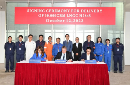 10月12日,中國船舶集團(tuán)旗下江南造船為荷蘭船東Anthony Veder公司設(shè)計、建造的30000立方米液化天然氣(LNG)運(yùn)輸船“Coral Nordic”號在上海簽字交付。