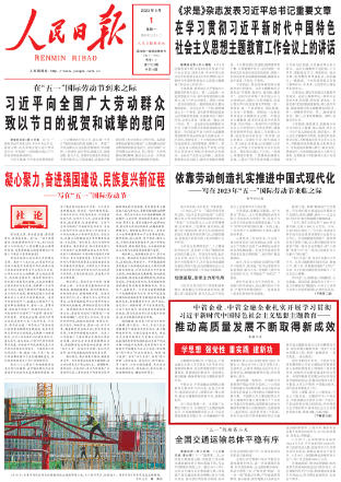 人民日報2023年5月1日頭版刊發《中管企業、中管金融企業扎實開展學習貫徹習近平新時代中國特色社會主義思想主題教育——推動高質量發展不斷取得新成效(學思想 強黨性 重實踐 建新功)》。文中提到: